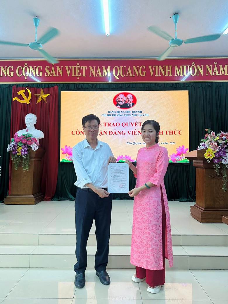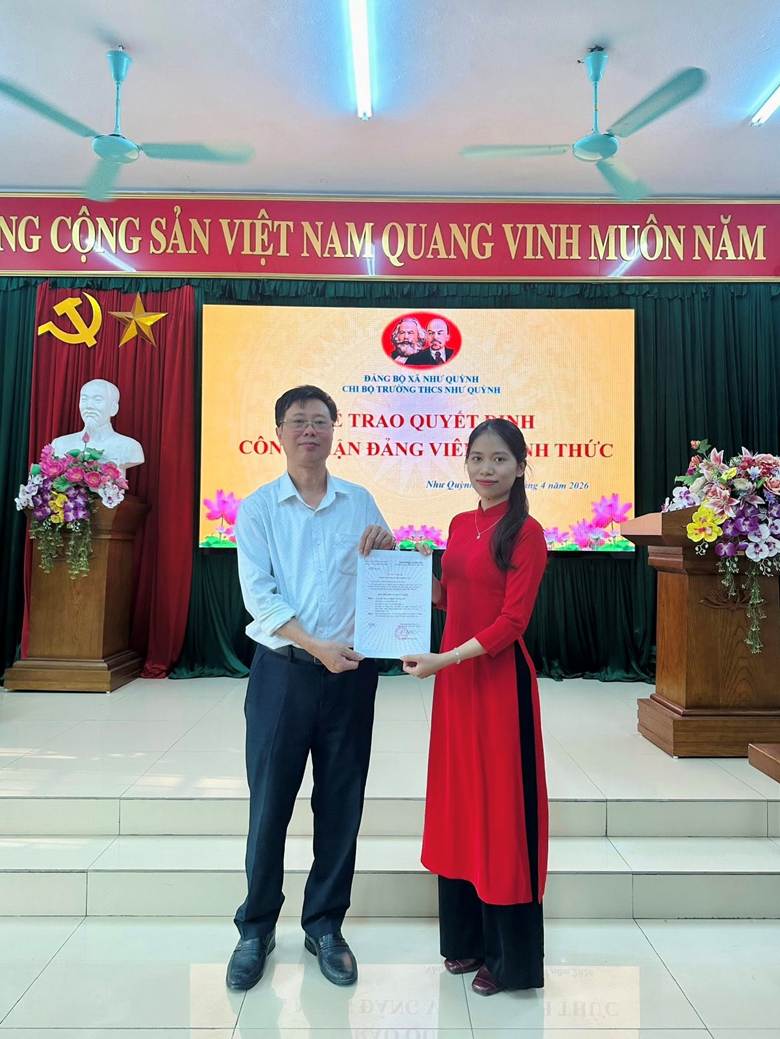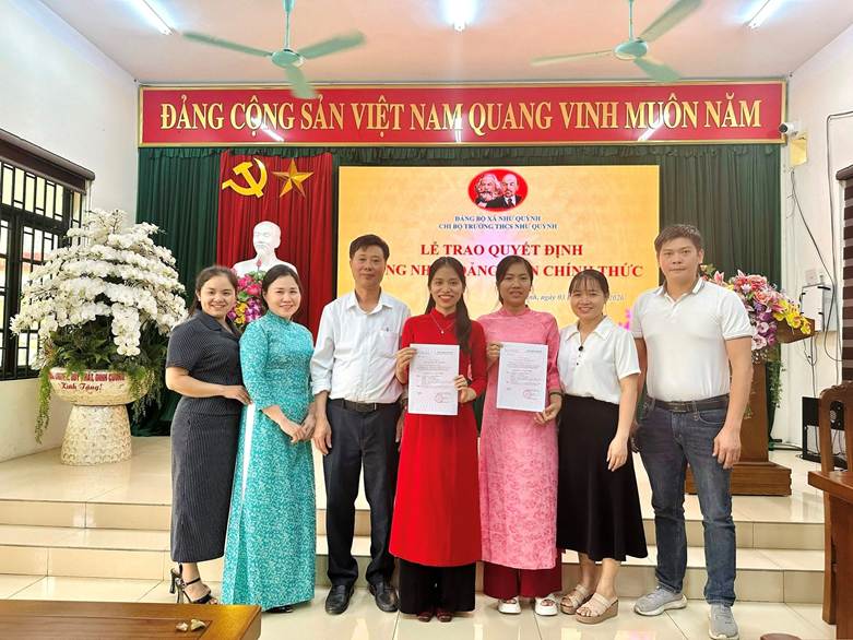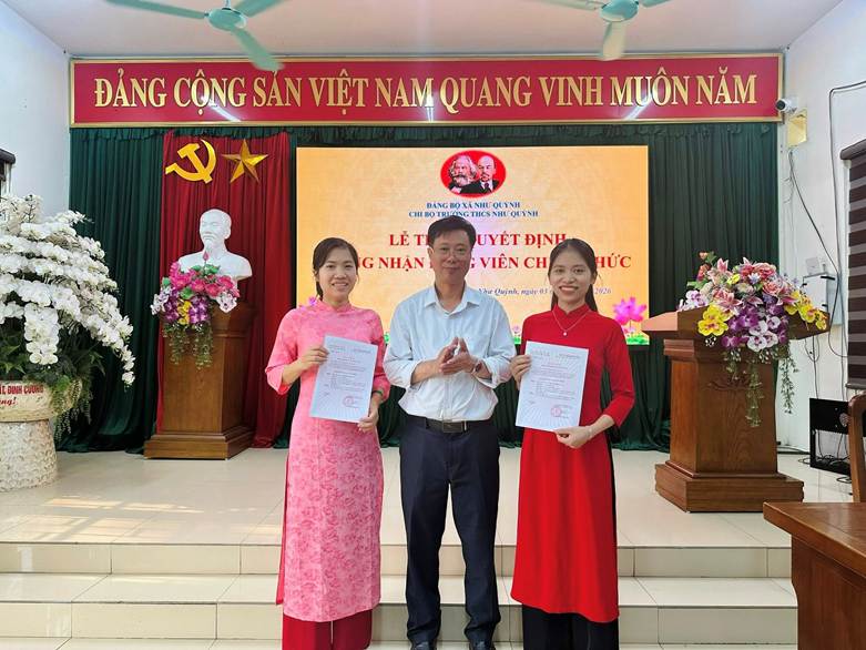 Chi bộ Trường THCS Như Quỳnh long trọng tổ chức Lễ trao Quyết định công nhận Đảng viên chính thức cho hai đồng chí: Trần Thu Trang và Đỗ Thị Kim Dung.