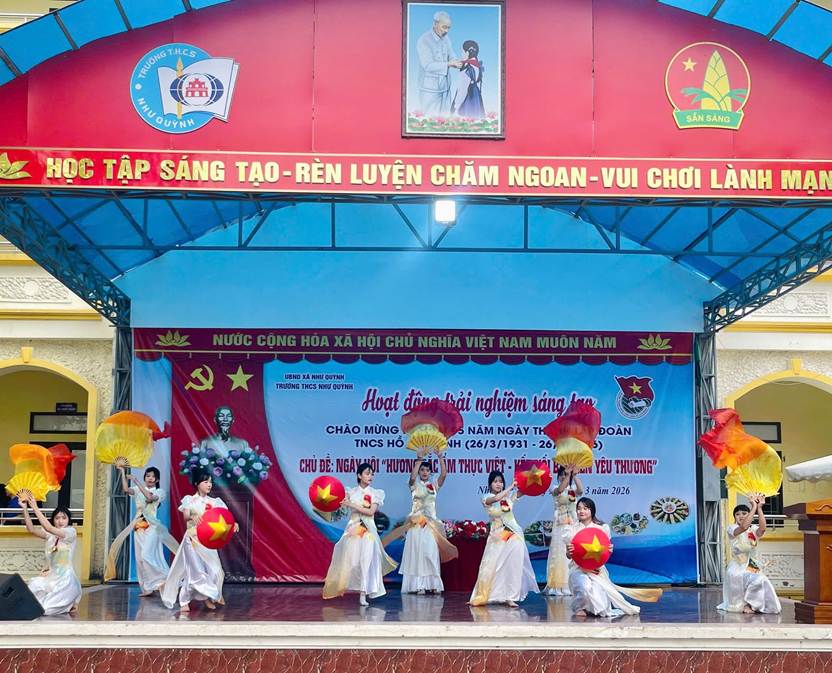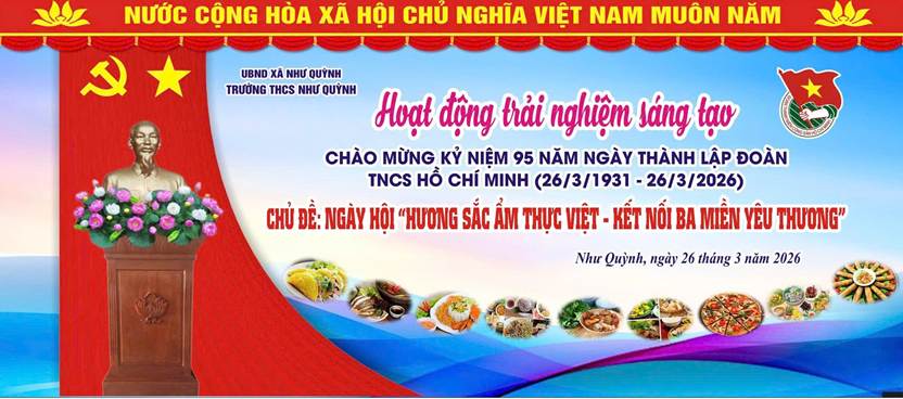 Hòa chung không khí thi đua sôi nổi của tuổi trẻ cả nước hướng tới kỷ niệm 95 năm Ngày thành lập Đoàn TNCS Hồ Chí Minh (26/3/1931 – 26/3/2026), trong hai ngày 25 và 26/3/2026, Trường THCS Như Quỳnh đã tổ chức thành công Ngày hội “Hương sắc ẩm thực Việt- Kết nối ba miền yêu thương” với nhiều hoạt động phong phú, hấp dẫn, thu hút đông đảo học sinh tham gia.