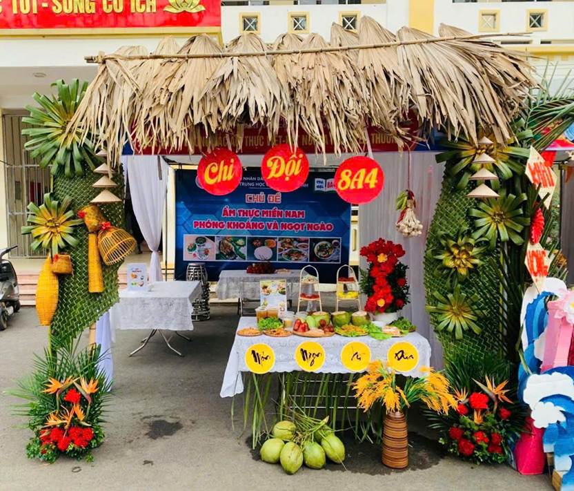 Tại ngày hội, các gian hàng được đầu tư công phu, trang trí sáng tạo với nhiều ý tưởng độc đáo, tái hiện sinh động không gian văn hóa ẩm thực ba miền Bắc-Trung- Nam. Từ cách bài trí, phối màu đến các vật dụng trang trí đều thể hiện sự tỉ mỉ, khéo léo và óc thẩm mỹ của học sinh.