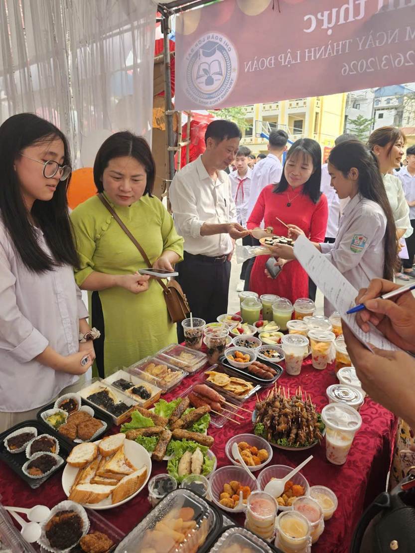 Thực đơn tại các gian hàng vô cùng phong phú, đa dạng, hội tụ nhiều món ăn truyền thống đặc trưng của từng vùng miền như bánh chưng, nem rán, các loại bánh dân gian, chè, đồ ăn vặt… Mỗi món ăn không chỉ được chế biến công phu, đảm bảo vệ sinh an toàn thực phẩm mà còn được trình bày đẹp mắt, hấp dẫn, thể hiện sự sáng tạo và tinh thần trách nhiệm của các em.
