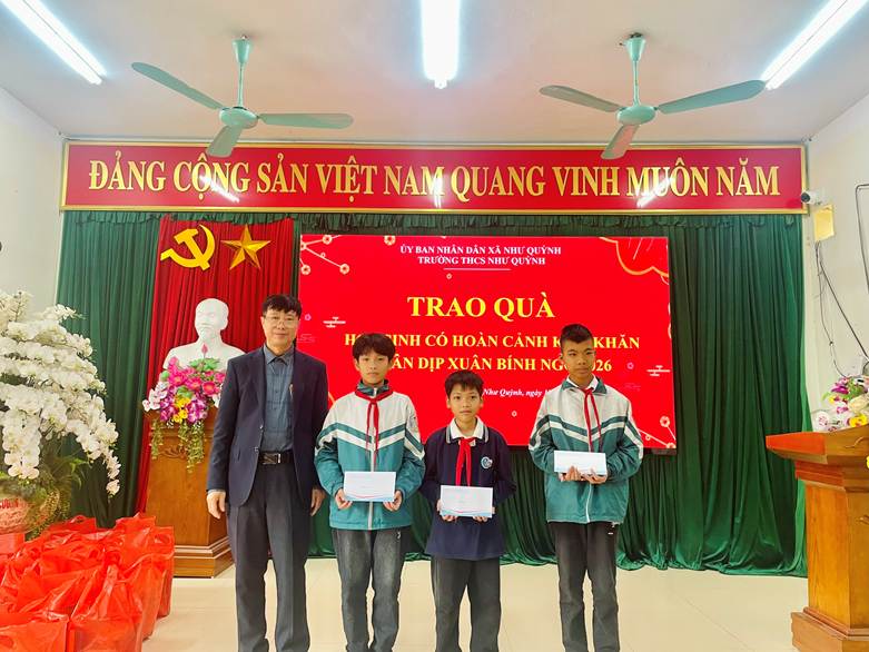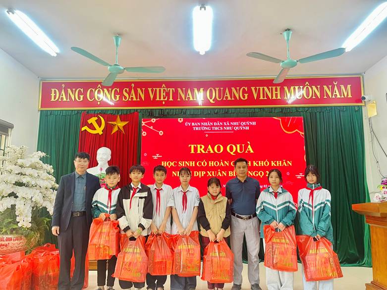 Đặc biệt, nhà trường xin được trân trọng gửi lời cảm ơn sâu sắc trước sự quan tâm, động viên kịp thời của UBND xã Như Quỳnh với những phần quà thiết thực trao tặng các em học sinh. Sự quan tâm của lãnh đạo địa phương không chỉ là nguồn hỗ trợ về vật chất mà còn là sự động viên tinh thần to lớn, góp phần giúp các em và gia đình đón một mùa xuân ấm áp, nghĩa tình.